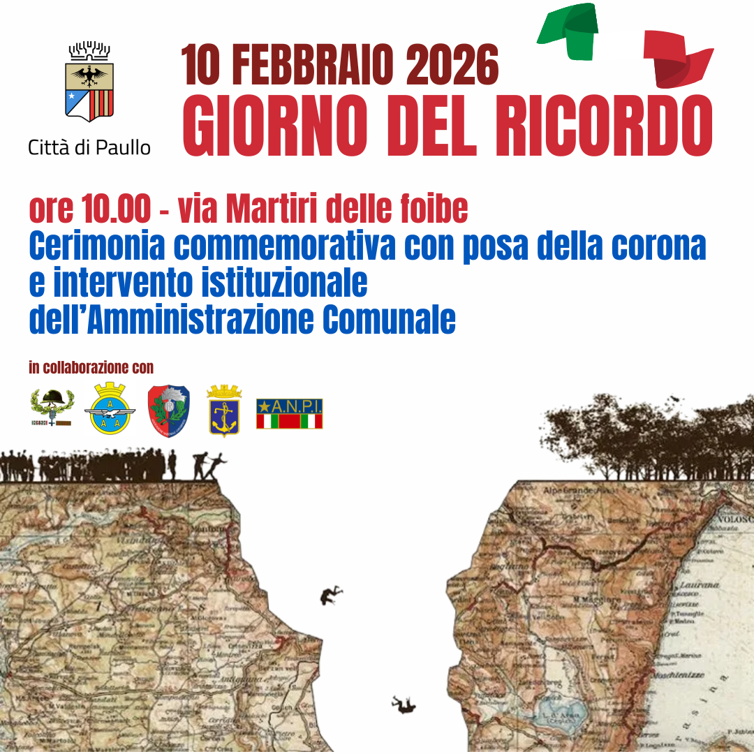 Martedì 10 febbraio, alle ore 10.00, c/o Via Martiri delle Foibe, si terrà la cerimonia commemorativa in occasione del Gionro del Ricordo 2026.
